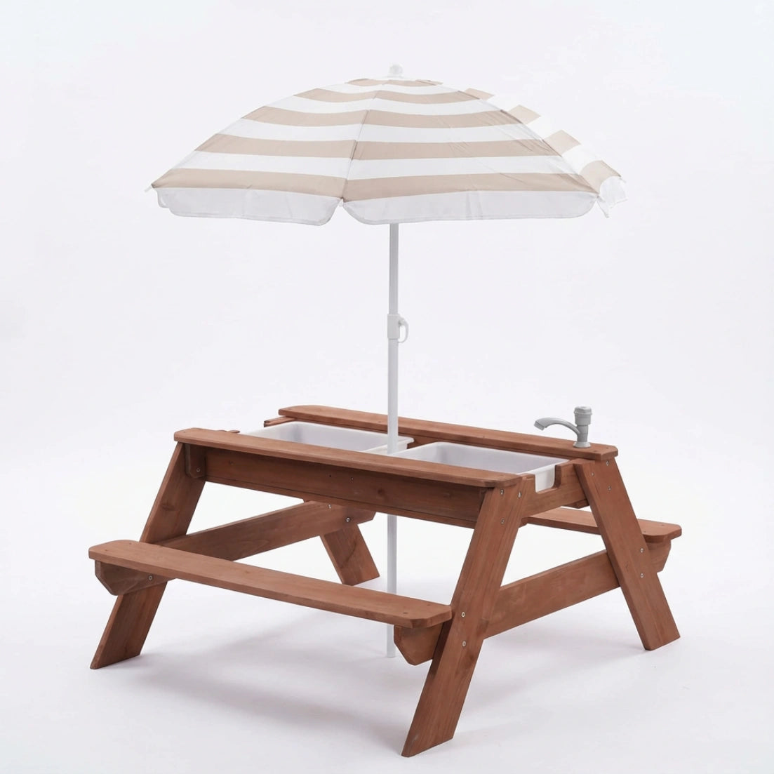 Luckids Picnic Table with Pink Stripe Umbrella - Brown