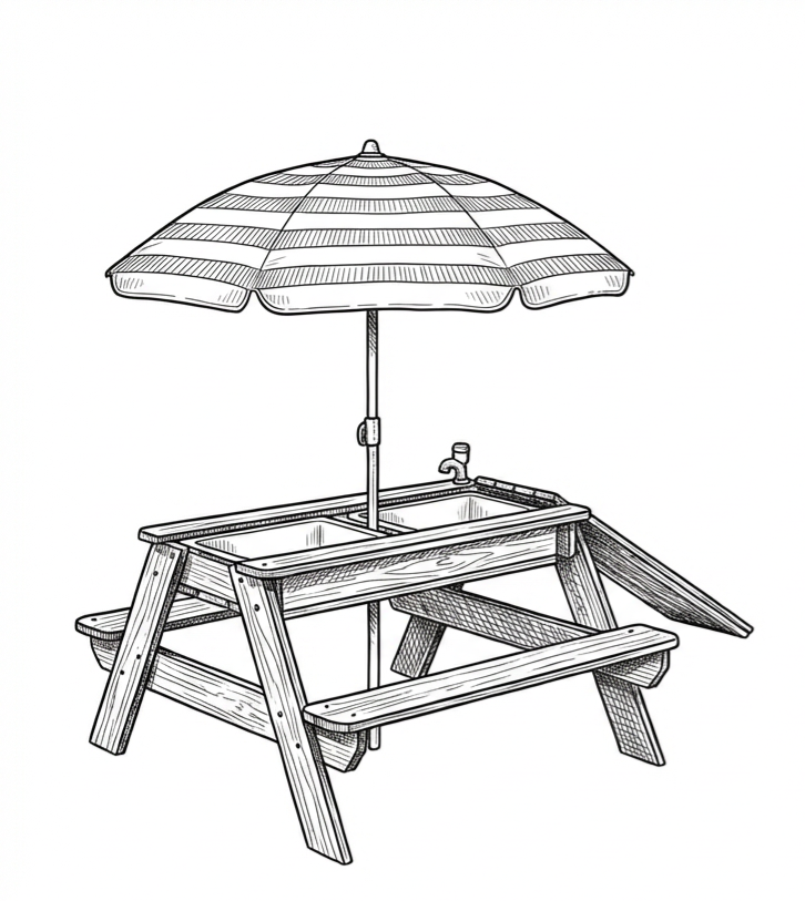 Luckids Picnic Table with Blue Stripe Umbrella - Blue & Pink