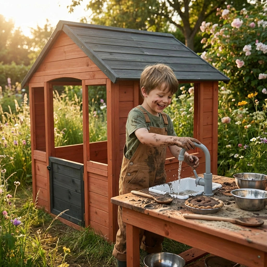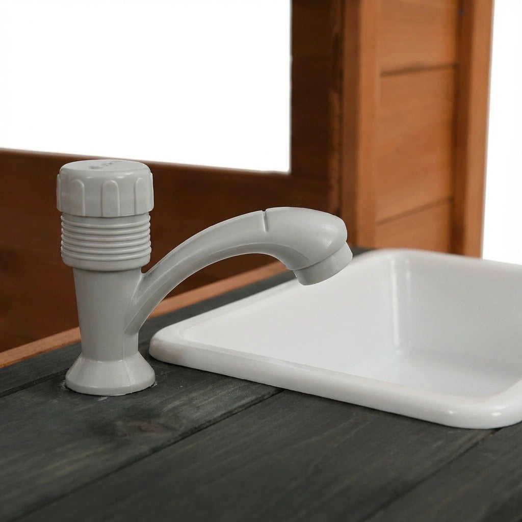 • Integrated Sink Station - Side-mounted sink with functional tap and basin for water play and pretend cooking